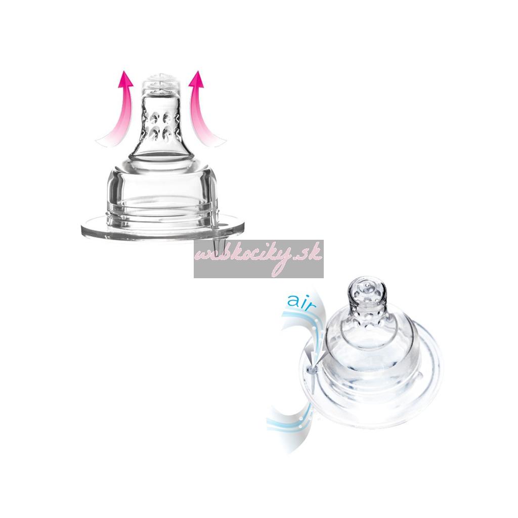 - Protikolikový cumlík - unikátny systém odvzdušňovania cumlíka minimalizuje možnosť vzniku detskej koliky.