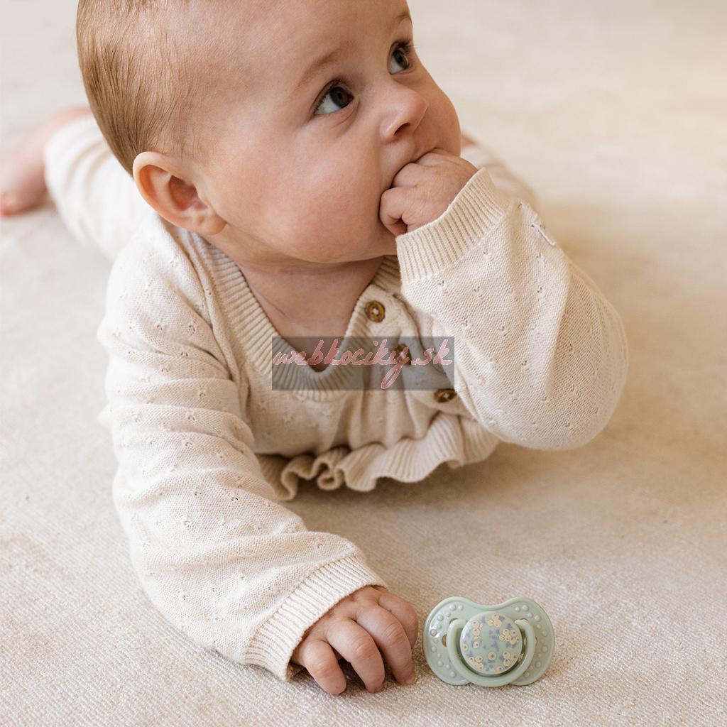 - Jemný silikón v cumlíku je pre bábätko neutrálnym materiálom, nevyvoláva alergické reakcie, je bez chuti a zápachu, čo je obzvlášť dôležité v tejto fáze, keď je dieťa citlivé na vonkajšie podnety.