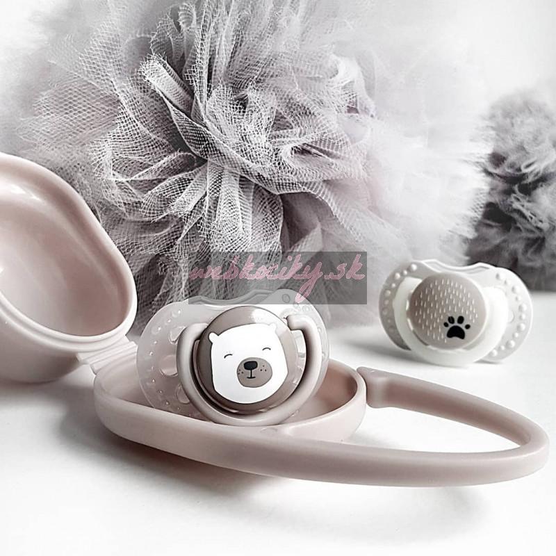 - Plastová krabička slúži ako puzdro na hygienické uchovávanie cumlíka.