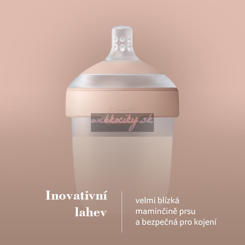 Vytvořeno týmem designérů ve spolupráci s rodiči malých dětí a odborníky, aby lahev byla co nejvíce podobná prsu.