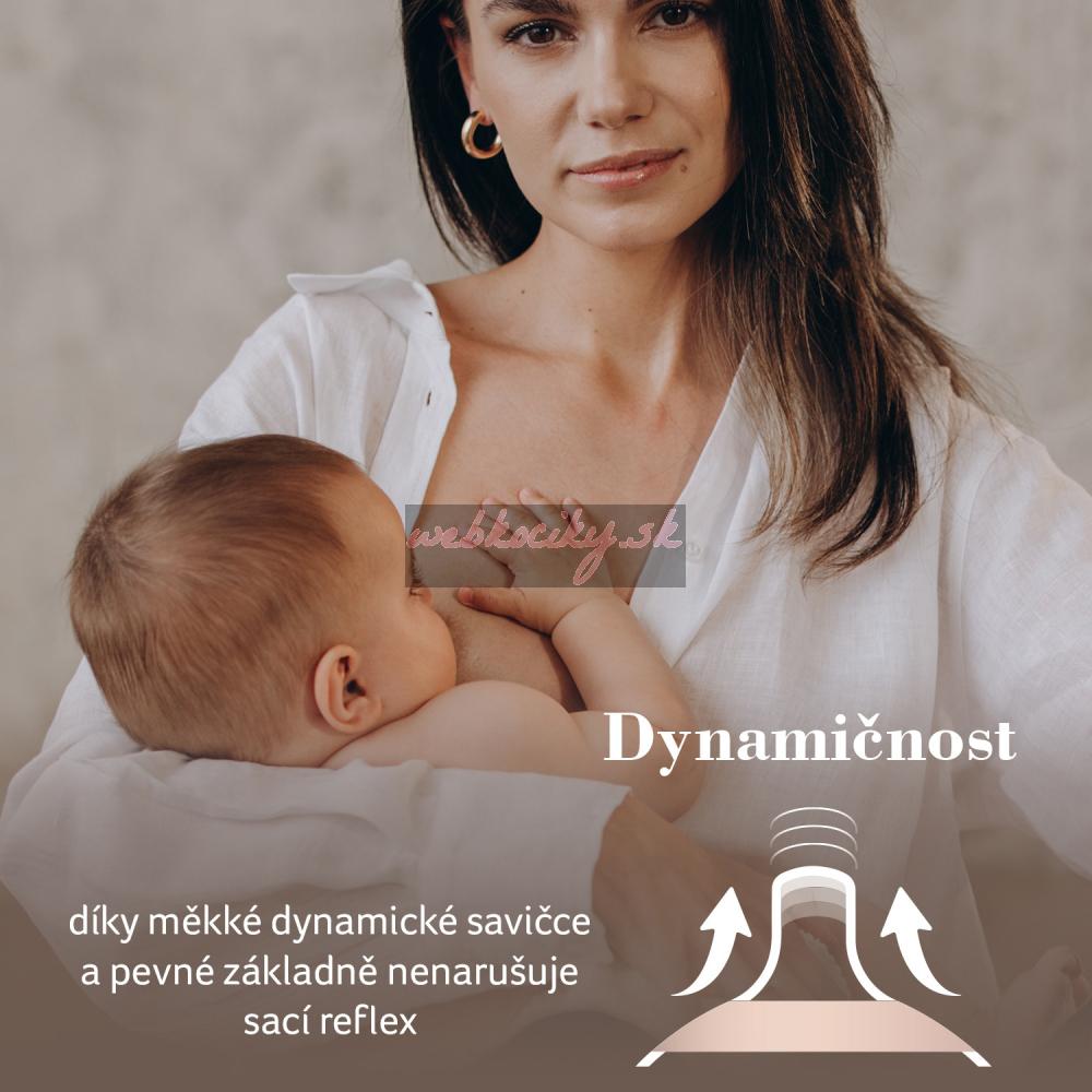 Dynamická savička umožňuje sání v přirozeném rytmu a nenarušuje sací reflex.