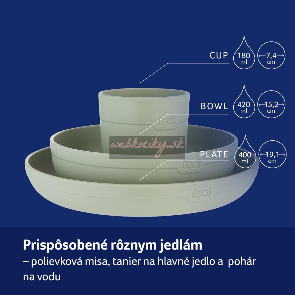 Sada riadu LOVI obsahuje misku, tanier a hrnček. Všetko, čo je potrebné na rozšírenie jedálnička dieťaťa. Riad LOVI je ideálnym produktom pre samostatné stravovanie dieťaťa – miska a tanier sú vhodné pre rôzne pokrmy a hrnček je skvelým pomocníkom na učenie sa piť z otvoreného hrnčeka.