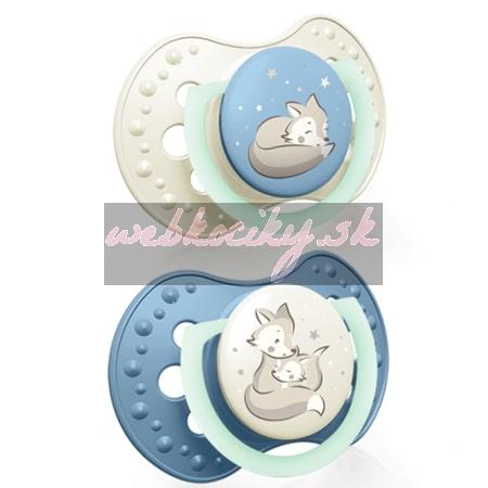 LOVI Silikónový dynamický cumlík 0-3m 2 ks Night&Day Chlapec