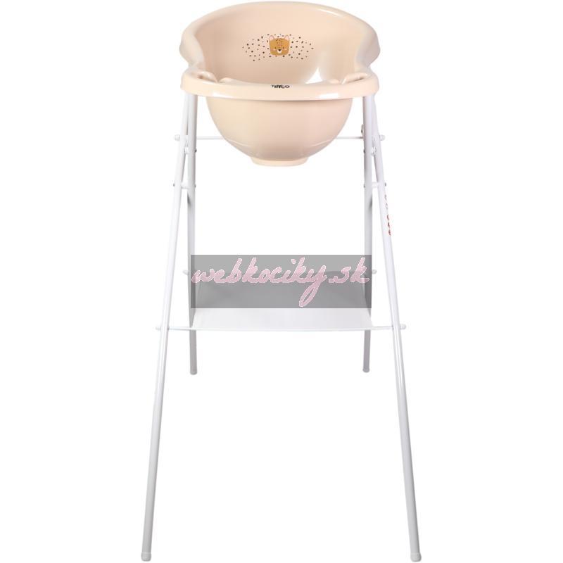 Stojan na vaničku (84 cm), zaisťuje bezpečné a príjemné kúpanie, bez zbytočného zaťažovania chrbtice rodičov. Stojan je vybavený policou na uterák. Spodná časť stojana je zabezpečená proti pokĺznutiu. Produkt je skladací a ľahko sa používa