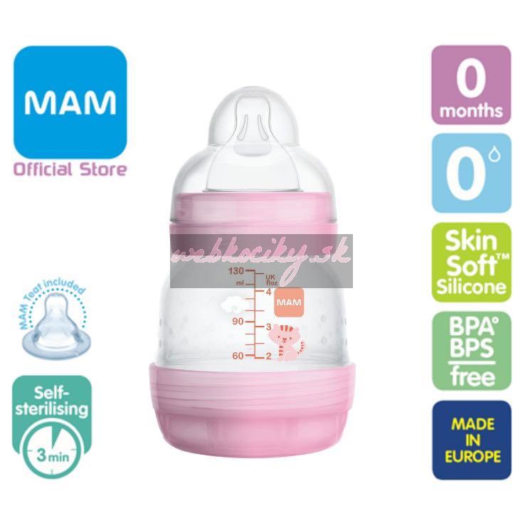 Mam Anti Colic 130ml+Start soothers Mixed colors plastová cumlíková fľaša pink