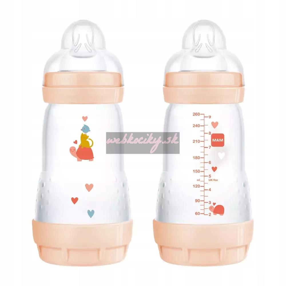 Lekárska štúdia a prieskum trhu potvrdzujú, že fľaša Anti-Colic znižuje výskyt koliky u 80 % detí, ktoré ju používajú. Jedinečné dno s prieduchmi zaisťuje ideálny tok mlieka či inej tekutiny. Deti sú pri pití z fľaše Anti-Colic pokojné a uvoľnené – pretože neprehĺtajú žiadny vzduch. MAM zamatový cumlík napodobňuje mamičkin prsník pri dojčení a podporuje tak prirodzený sací reflex, čím uľahčuje prechod od dojčenia k fľaši.