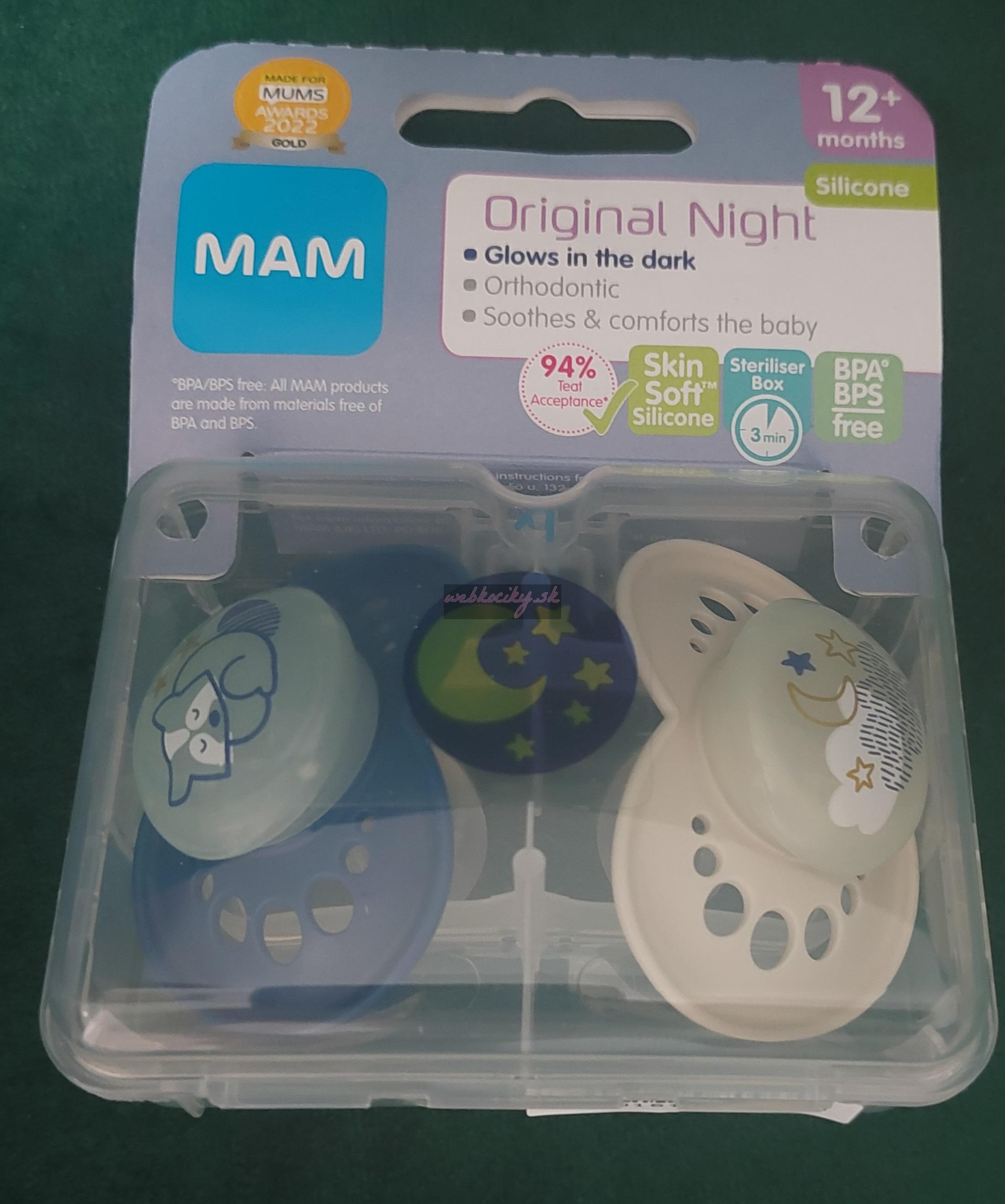 Cumlíky s extra mäkkým silikónovým cumlíkom z radu Mam Original Night.