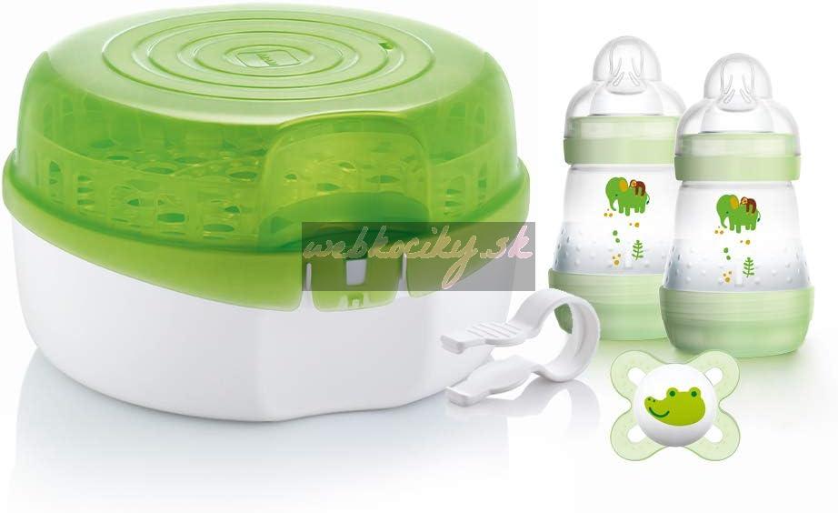 MAM Baby Parný sterilizátor do mikrovlnky + 2 fľaše 0+ a upokojujúci cumlík