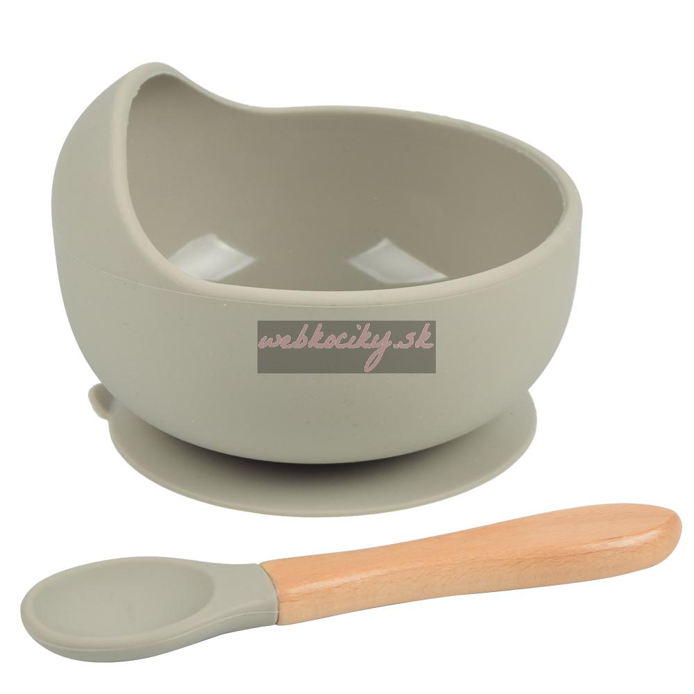 Martons SET – silikonová miska Classic s prísavkou + lyžička Beige