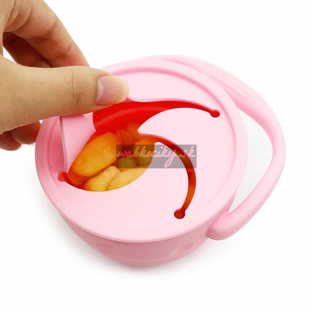 aby bránil voči vypadnutiu keksíkov, sušienok. Chyťte pohárik a uložte občerstvenie dovnútra nádobky cez membránu- zatlačte ich do poháriky, ideálne s vrchnákom zakryť.