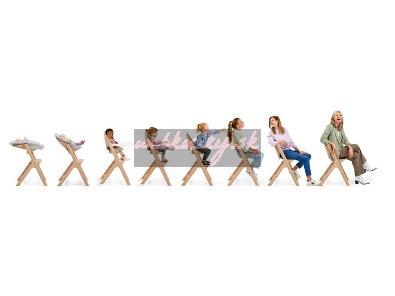 Vhodné pre deti od cca 6 mesiacov do 3 rokov. Od 3 rokov je možné nastaviteľnú stoličku používať bez doplnkov až do dospelosti dieťaťa.
