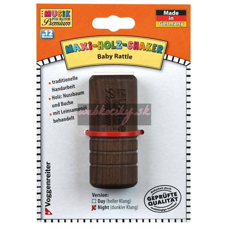 Musik für Kleine. Hudobný zážitok pre najmenších. Vhodné od 12 mesiacov. Drevené hudobné hračky najvyššej kvality, ručne vyrobené v Nemecku zo starostlivo vyberaného materiálu, upravené iba jedlým ľanovým olejom. Príjemné teplo dreva, jemne zaoblené tvary a hladký povrch hračiek ideálne do malých ručičiek. Dve kontrastné verzie “day&night” - svetlá je vyrobená z dreva buku a tmavá z dreva vlašského orechu. Každá verzia má vďaka inej náplni odlišný zvuk. Bezchybná remeselná práca a najlepší prírodný materiál bez chemickej úpravy zaručia najvyššiu bezpečnosť a kvalitný zvuk, preto sú tieto hračky právom nazývané Musik für Kleine PREMIUM. Vyrobené v Nemecku. Certifikované podľa normy EN 71. Impregnované jedlým ľanovým olejom. Neobsahujú žiadne syntetické nátery, pigmenty, rozpúšťadlá a nanočastice. Rozmer: dĺžka cca 86mm, priemer cca 36mm. Tmavá verzia: materiál: orechové drevo. náplň: fazuľky. EAN: 4250258310710. Svetlá verzia: materiál: bukové drevo. náplň: zrná.