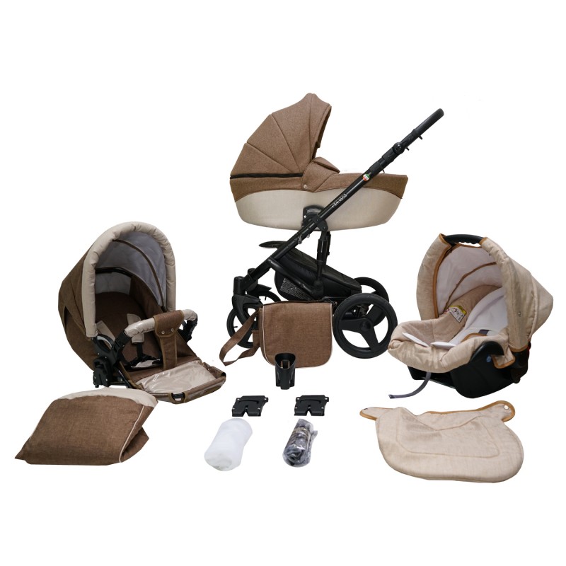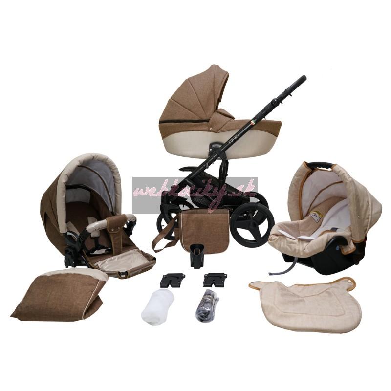 Tento luxusní kočárek lze zakoupit jako 2v1, nebo jako 3v1 a to včetně autosedačky - vajíčka s možností upevnění na konstrukci kočárku.