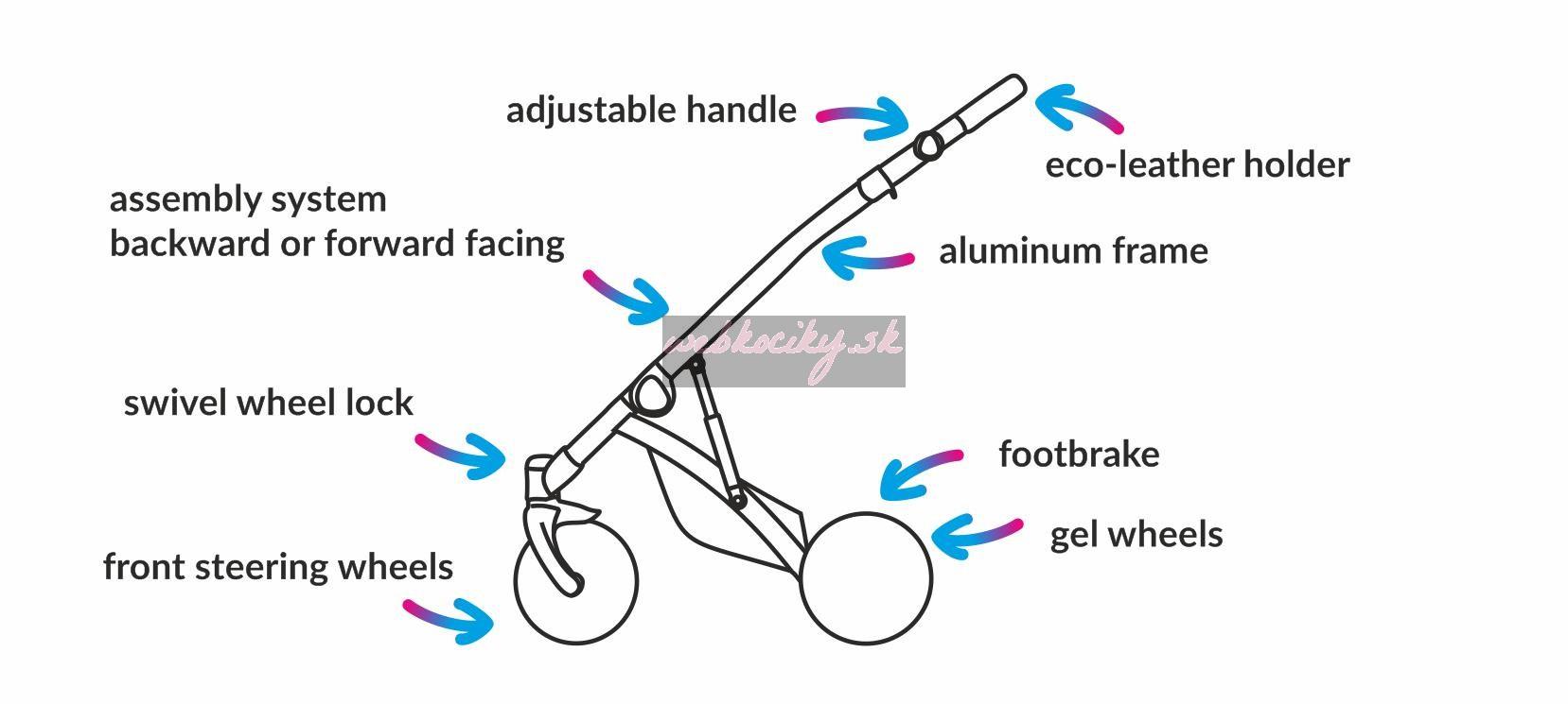 • konštrukcia kočíka je vyrobená z kvalitných materiálov, je pevná a odľahčená