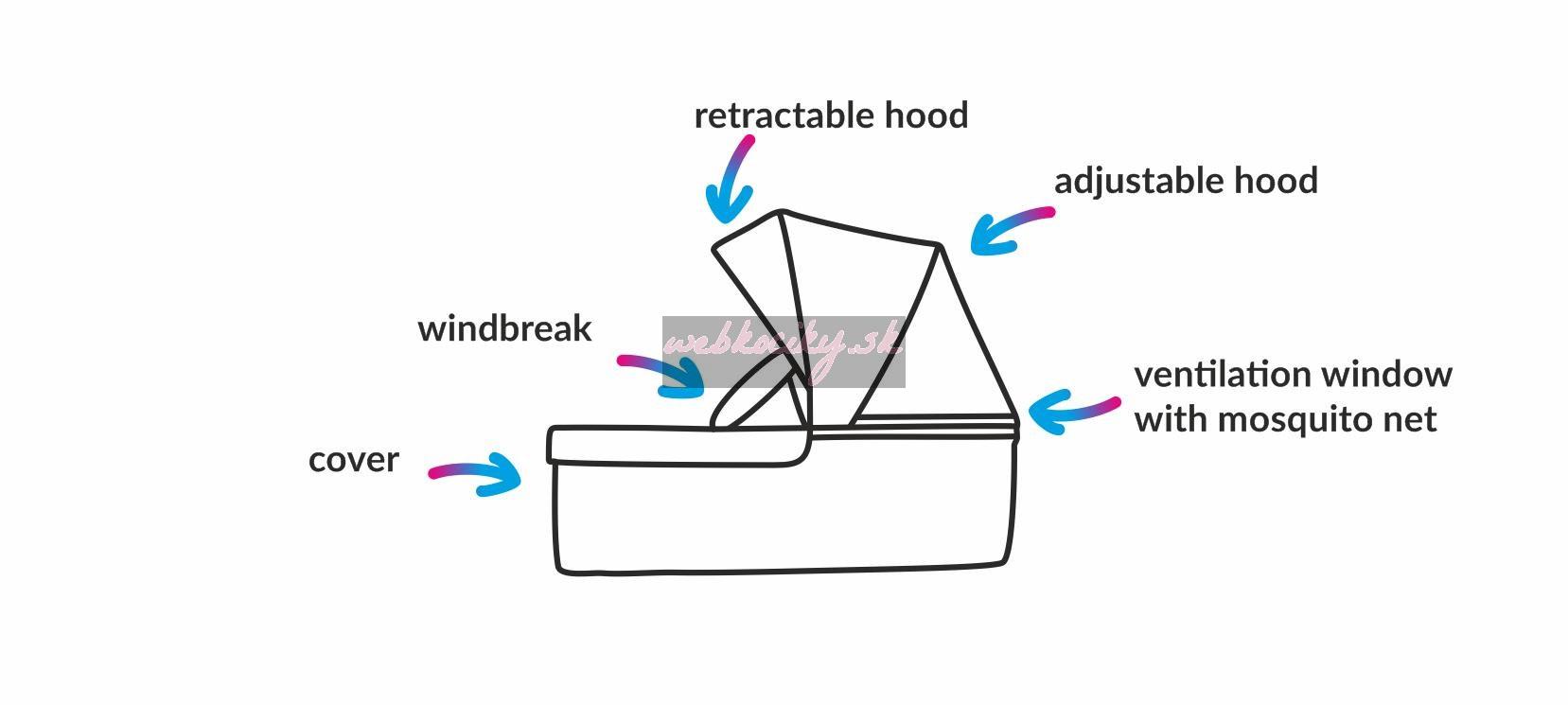 • slnečná clona s dvoma úrovňami, dostatočne ochráni dieťa v športovej sedačke pred vetrom aj slnkom,