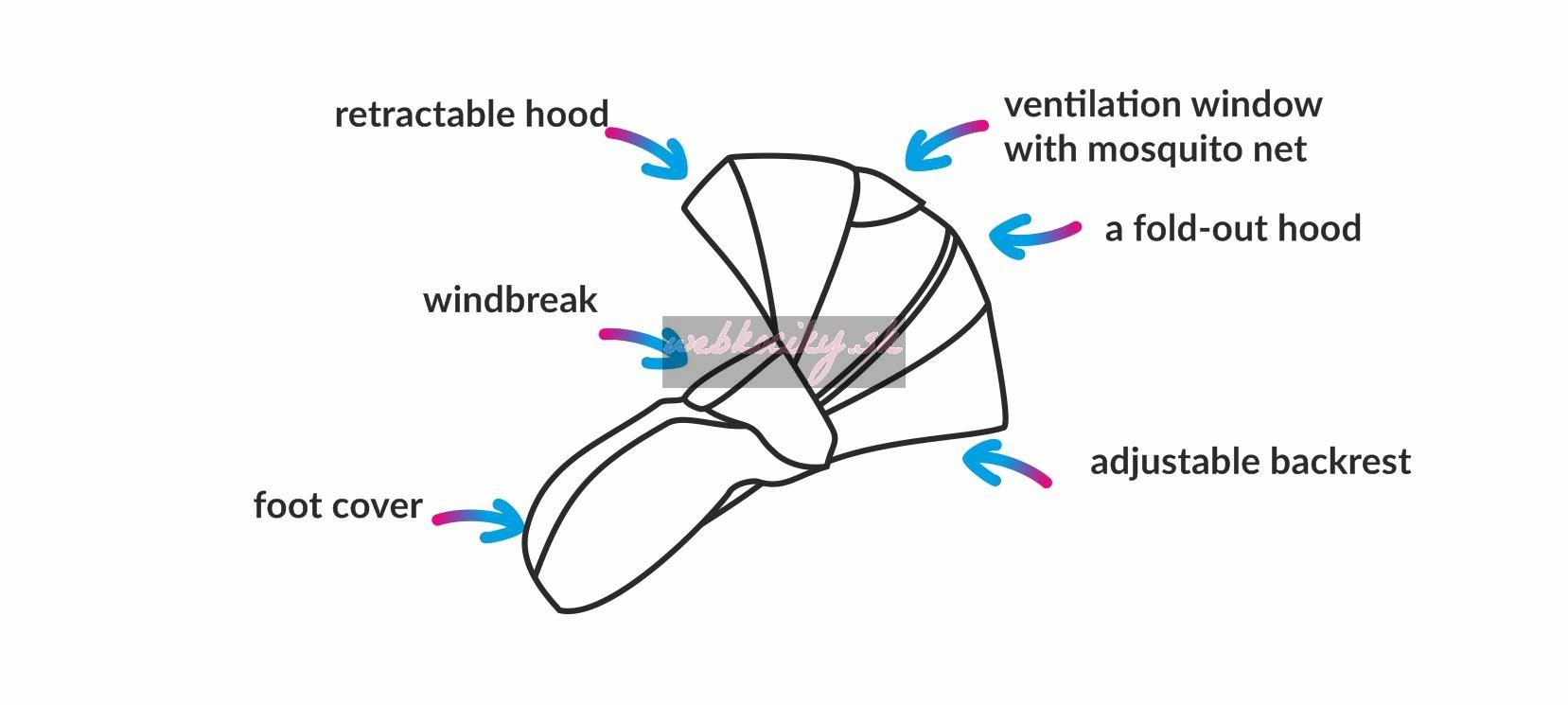 - slnečná clona s dvoma úrovňami, dostatočne ochráni dieťa v športovej sedačke pred vetrom aj slnkom,