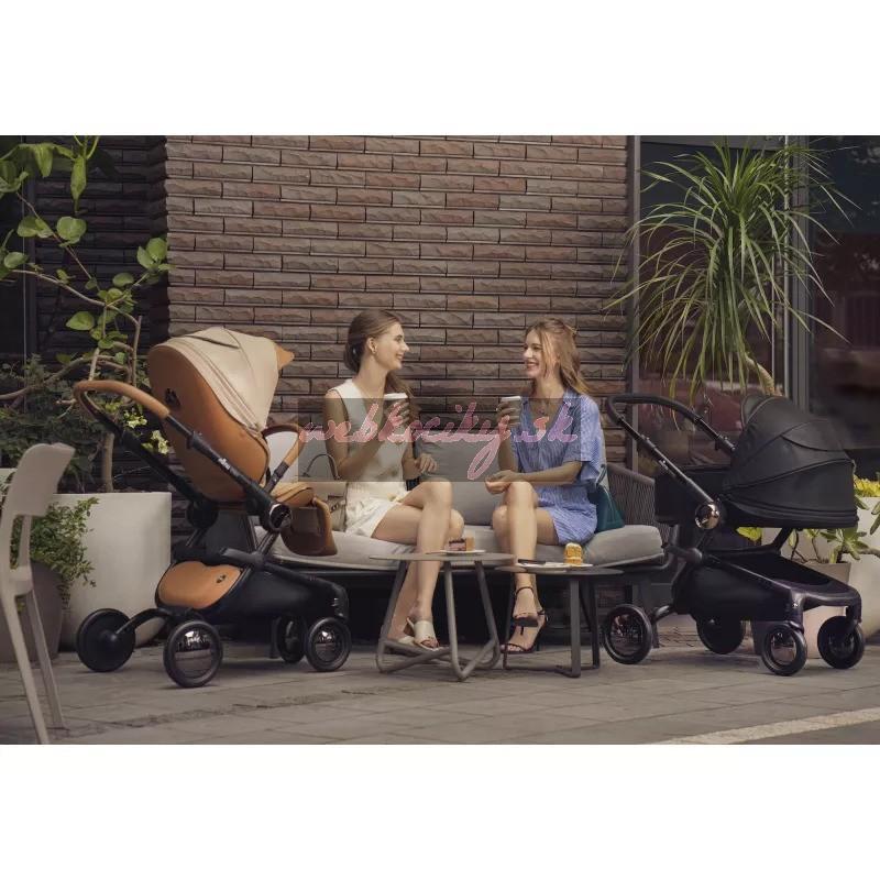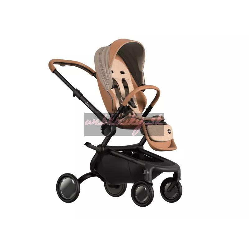 Teleskopicky nastaviteľná rukoväť kočíka umožňuje pohodlné držanie kočíka bez ohľadu na výšku rodiča. Rukoväť kočíka aj otočné madlo pred dieťaťom sú potiahnuté príjemnou umelou kožou. Jednoduché manévrovanie s kočíkom zaisťujú predné otočné kolesá s možnosťou aretácie. Pneumatiky z EVA materiálu sú zárukou hladkej jazdy bez rizika prepichnutia. Funkcia automatického skladania umožňuje kočík zložiť veľmi jednoducho do kompaktného tvaru na prevážanie autom. Kočík je možné skladať vrátane sedadla v polohe smerom od rodiča. Po zložení kočík stojí na úsporu miesta pri skladovaní. Košík ponúka dostatočný priestor na ukladanie potrebných potrieb pre dieťa, magnetický kryt umožňuje rozšíriť kapacitu košíka. Nožná brzda sa ľahko ovláda zošliapnutím na zabrzdenie aj odbrzdenie kočíka.