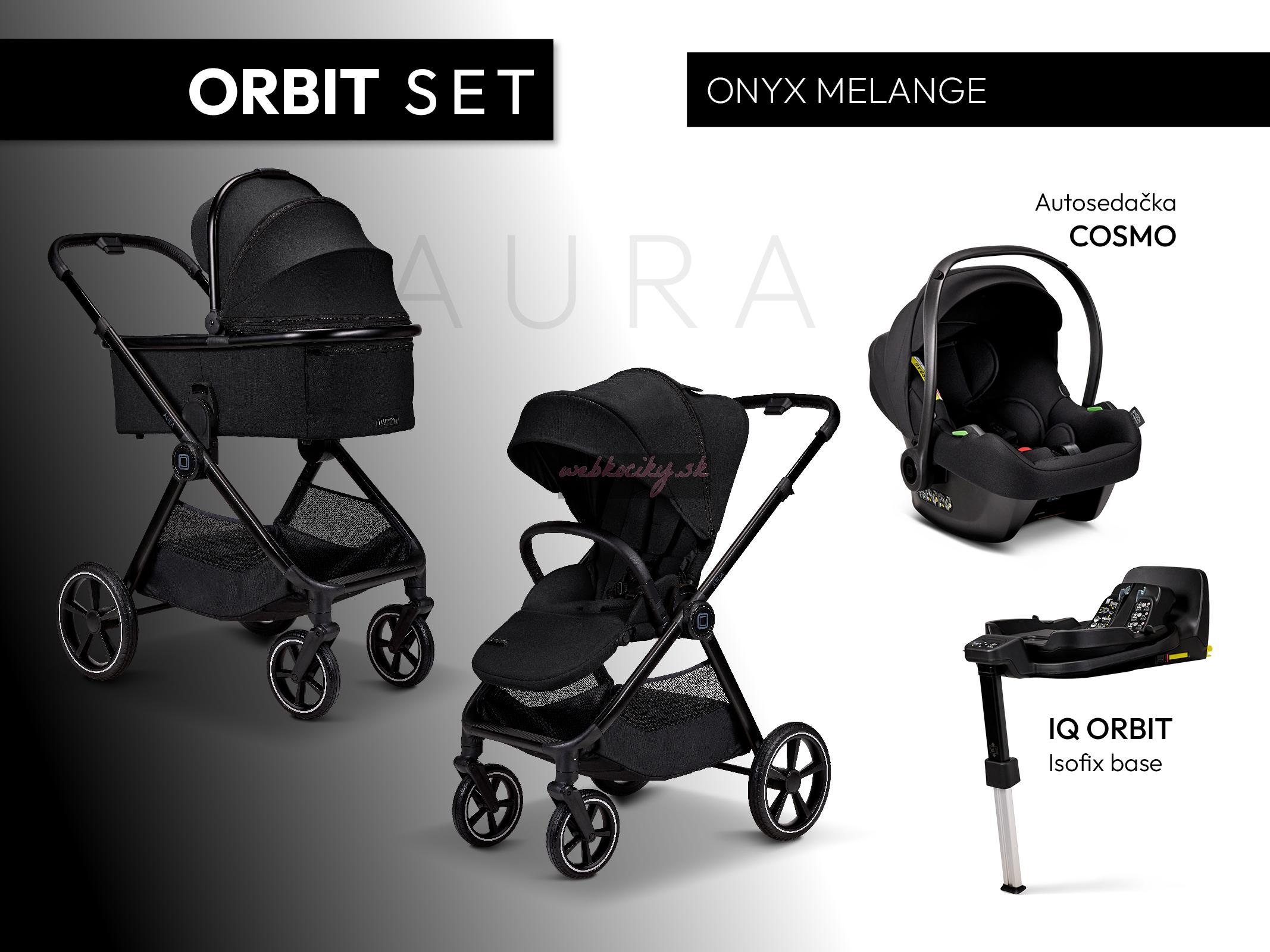 Pohodlný set AURA MAXI s autosedačkou COSMO Black Avionaut a otočnou základňou ORBIT.