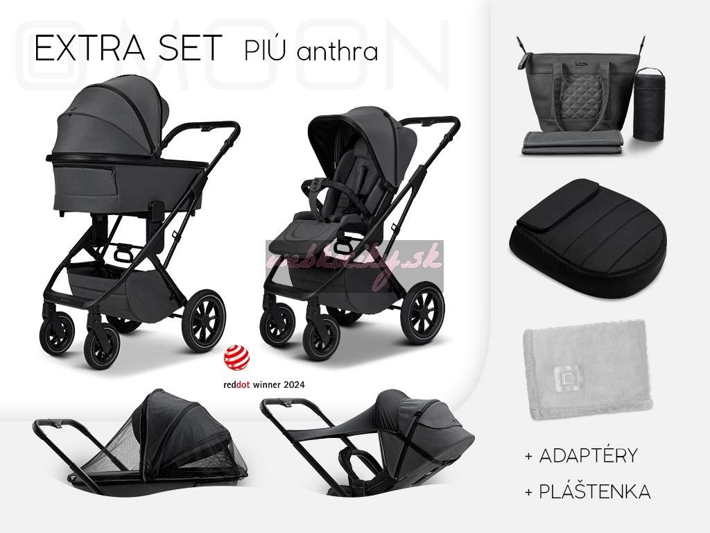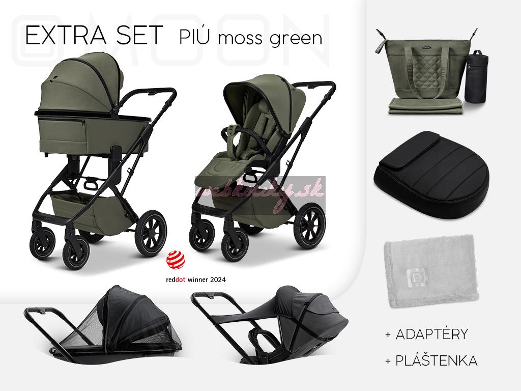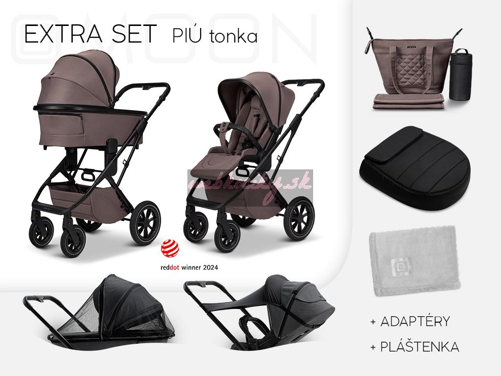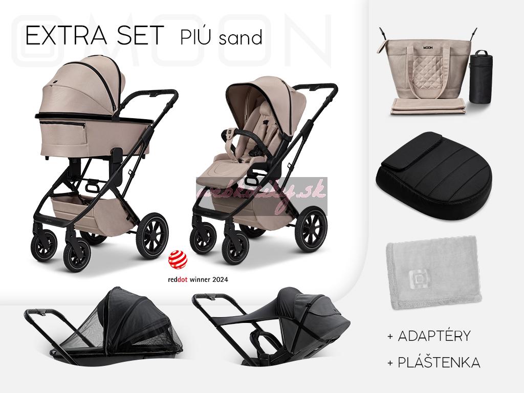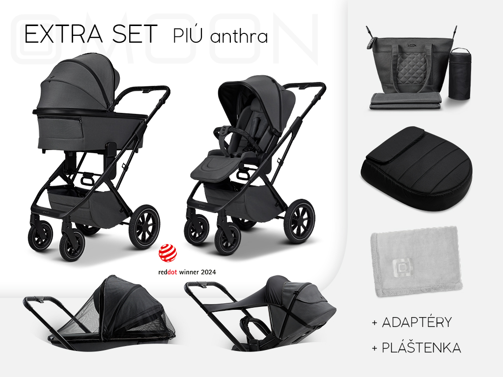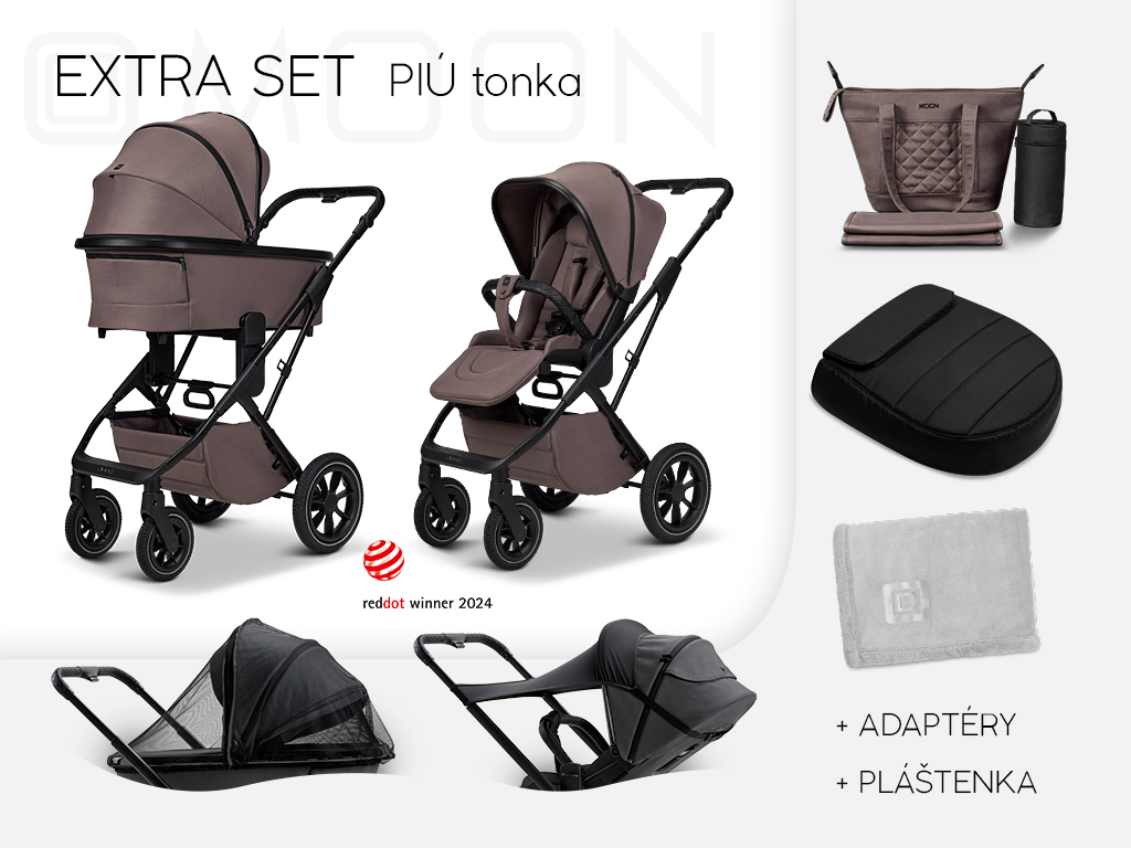 NOVINKA: Kočík MOON PIÚ vyniká krásnym a moderným designom. Priestranná hlboká vaňa s ventilačným odopínacím okienkom a prémiovou matracou od značky Träumeland. Ľahký a dobre skladný so športovou sedačkou po aj proti smeru. Priedušné materiály. Má vynikajúce jazdné vlastnosti vhodné ako do mesta, tak aj do terénu a extra odpružené gumové predné aj zadné kolesá.
