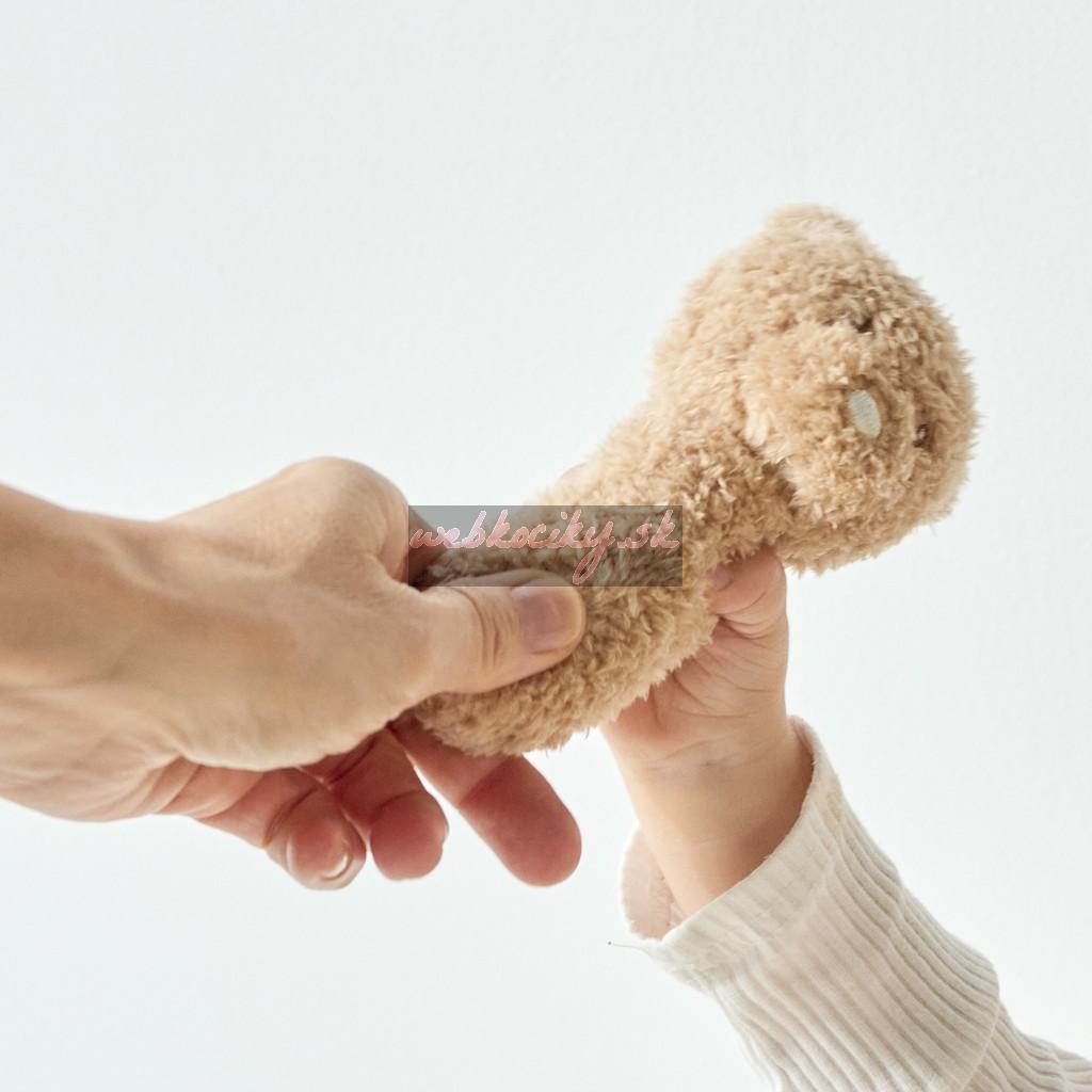 Mäkká plyšová hrkálka určená pre zábavu bábätka – jeho prvý hrací kamarát.
