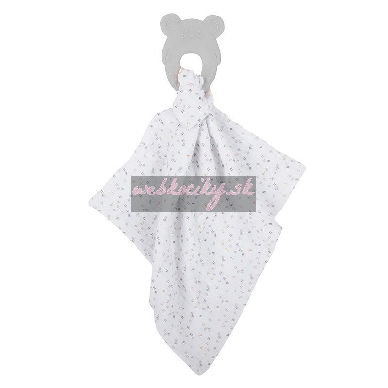 NATTOU Hryzačka silikónová bez BPA s bavlnenou dečkou 28 x 28 cm grey