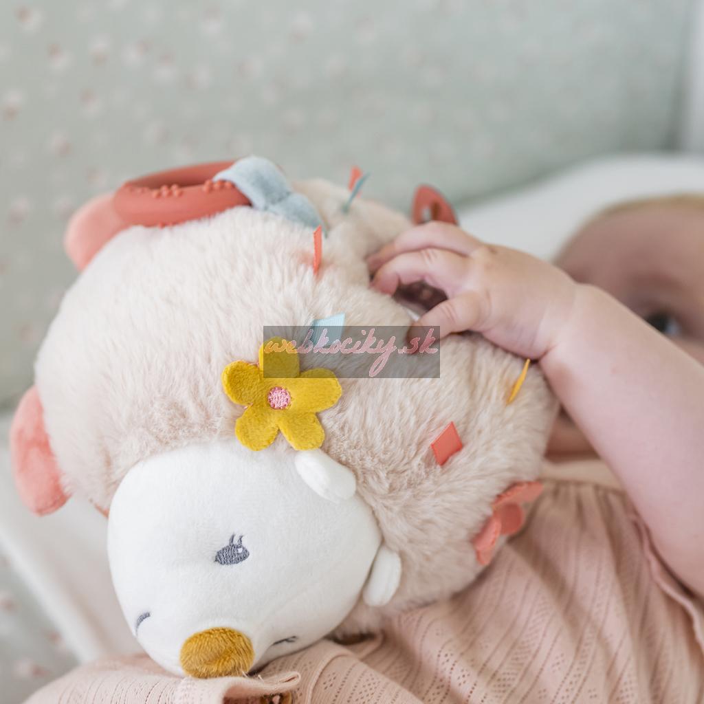 Aktívny plyšový ježko so zábavnými hračkami: krčený papier, hrkálka, pískadlo, chápadlo, štítky, silikónová hryzačka a zrkadlo