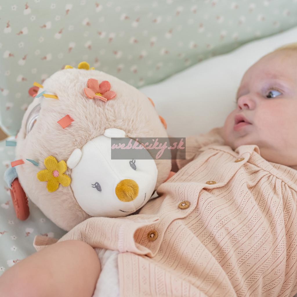 Táto krásna plyšová hračka s rôznymi aktivitami poskytuje vášmu dieťatku hodiny zábavy. Zábavné aktivity, ako je vstavaná hrkálka, silikónová hryzačka, zrkadielko a štítky, povzbudzujú vaše dieťatko, aby objavilo a uchopilo hračky. Hravou formou sa tak stimulujú reflexy uchopenia a motorický vývoj vášho dieťatka. Mäkká srsť plyšovej hračky ježka tiež poskytuje pocit bezpečia a istoty. Verný spoločník na hranie, ktorý prináša radosť a pohodlie už od narodenia, ako aj skvelý tip na darček pre vaše bábätko.