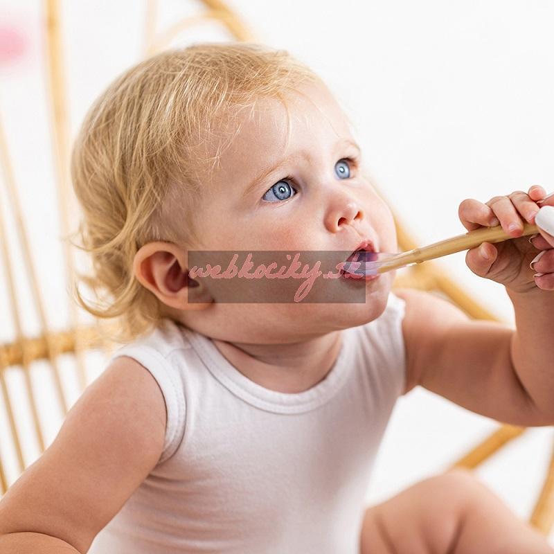 - Vyrobené zo 100% silikónu špeciálne upraveného tak, aby nedráždili krehké ďasná dieťaťa vďaka extra mäkkej a pružnej silikónovej špičke.