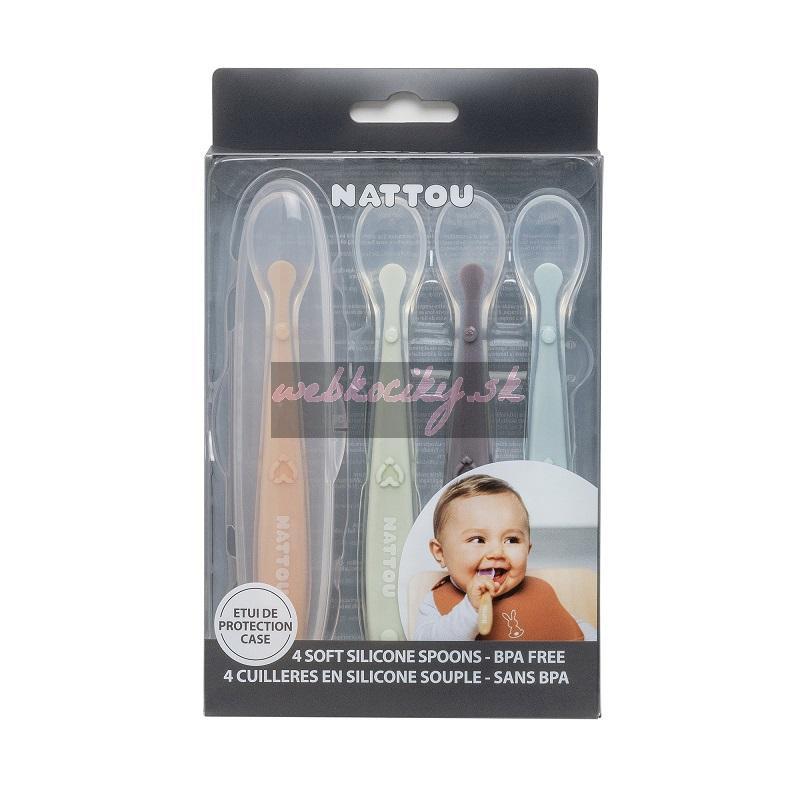 Set 4 lyžičiek od Nattou z mäkkého a ohybného silikónu, ktoré zabezpečujú jednoduchšie stravovanie pre vaše dieťa. Lyžičky sú vďaka mäkkosti a flexibilite šetrné k ďasnám.