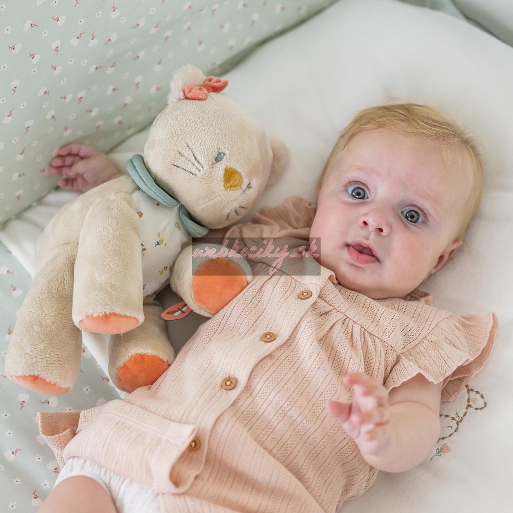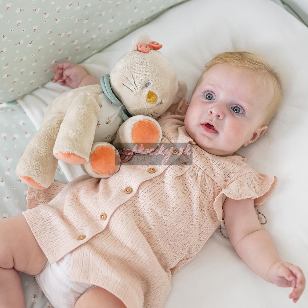 Krásna pusinka vyrobená z polyesteru a bavlny, ktorá je príjemná a stimuluje hmat dieťaťa.