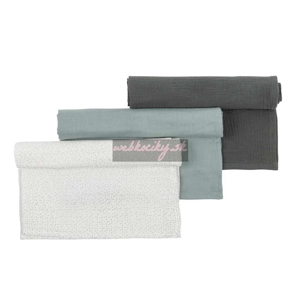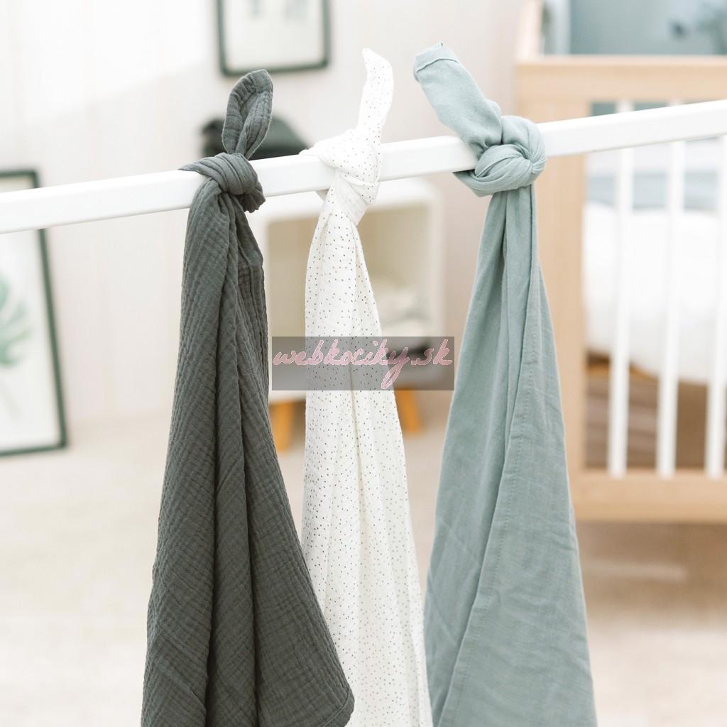 Hebučké mäkké mušelínové plienky sú neoddeliteľným spoločníkom v každodennom živote s novorodencami a bábätkami a nemali by chýbať v žiadnej detskej výbavičke. Majú všestranné využitie či už doma pri kúpaní alebo na cestách s kočíkom alebo autom. Dieťatko môžete mušelínovými plienkami zabaliť, zakryť alebo ich použiť ako plachtu či osušku. Sú vhodné aj na krytie pri dojčení. Látkové plienky zaujmú aj krásnym dizajnom v moderných farbách.