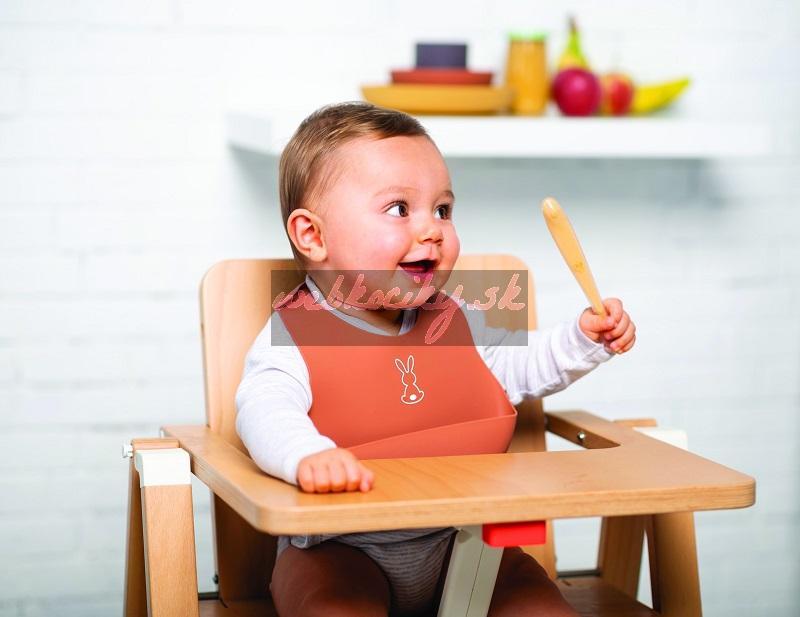 Podbradník Nattou vyrobený z pružného silikónu s motívom roztomilých králikov a praktickou zbernou časťou zabezpečí kŕmenie a jedenie vášho dieťatka bez zbytočného stresu z neporiadku .