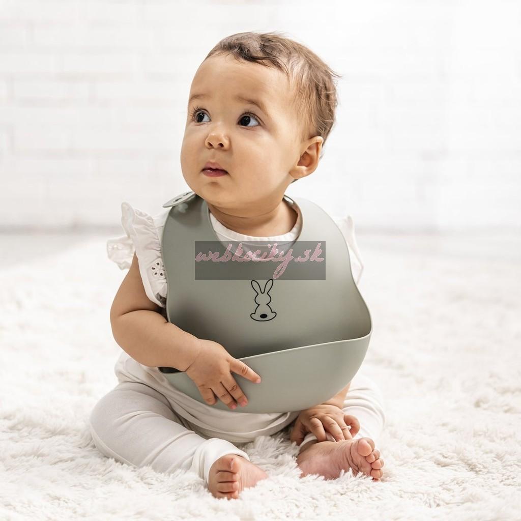 Podbradník Nattou vyrobený z pružného silikónu s motívom roztomilých králikov a praktickou zbernou časťou zabezpečí kŕmenie a jedenie vášho dieťatka bez zbytočného stresu z neporiadku .