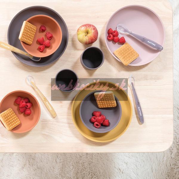 NATTOU Set jedálenský silikonový 4 ks hnedo-terakotový bez BPA