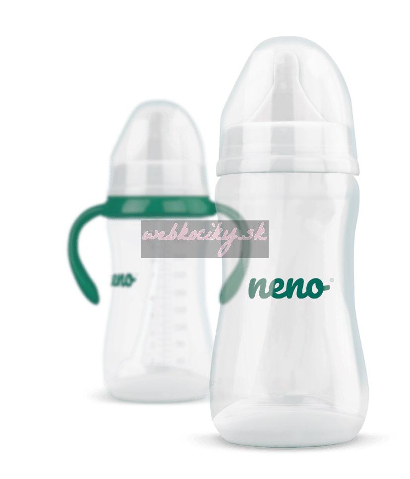 - Fľaše Neno 240 a 300 ml sa dodávajú s pripojiteľnou rukoväťou, ktorá pomôže naučiť vaše dieťa piť samo.