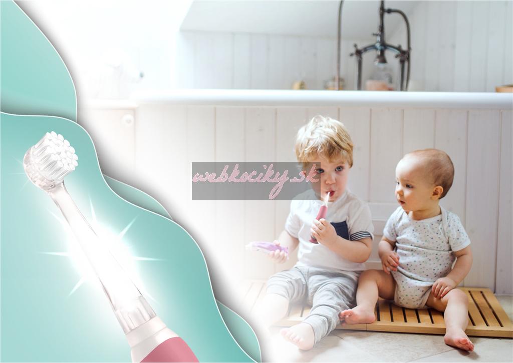 - Led svetlo zubnej kefky vám umožní vidieť na zúbky vášho dieťatka. Svetlo navyše vaše dieťatko určite zaujme a premení každodenné čistenie zubov na úplne nový spôsob hry.