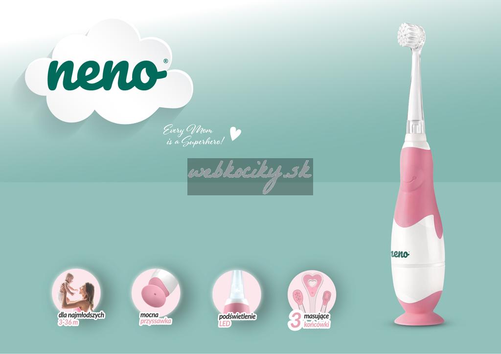 - Možno použiť aj na starostlivosť o detičky bez zúbkov. Neno Denti sa dodáva so špeciálnou hlavicou, ktorá sa používa na masáž ďasien detičiek starších ako 3 mesiace.
