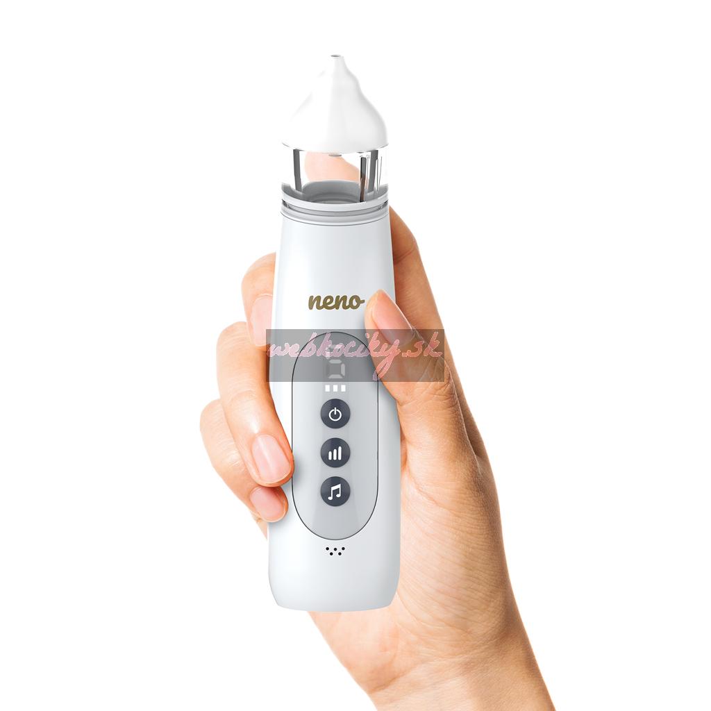 Neno Corto je moderná bezdrôtová nosová odsávačka určená pre dojčatá a batoľatá od narodenia. Je vybavená dvomi mäkkými vymeniteľnými koncovkami a jemne odstraňuje sekréty bez toho, aby dráždila citlivú nosovú sliznicu. Päť úrovní sacieho výkonu umožňuje presne nastaviť sací výkon podľa veku a potrieb vášho dieťaťa, zatiaľ čo farebné LED svetlá a tri melódie pomáhajú rozptýliť vaše dieťa a znižujú stres počas procedúry.