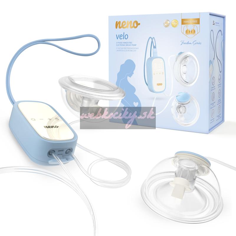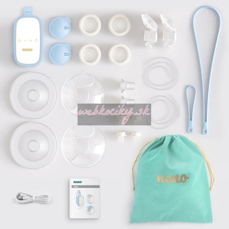 Neno Velo je inovatívna bezdrôtová handsfree odsávačka materského mlieka vďaka ktorej toho zvládnete naozaj veľa. Neno Velo je produkt, ktorý je odpoveďou na potreby matky, ktoré oceňujú pohodlné a praktické riešenia. Handsfree odsávačka mlieka pozostáva zo sady zberných pohárikov pripojených k odsávačke. Efektívne odsávanie mlieka je možné vďaka jeho trojfázovému pôsobeniu (s 8 úrovňami regulácie) a prsným štítkom, ktorých veľkosť môže byť od 24 mm do 20 mm. Šnúrky dodávané v rôznych dĺžkach umožňujú zavesiť odsávačku okolo krku alebo pripnúť na opasok nohavíc pre neoceniteľné pohodlie pri odsávaní.