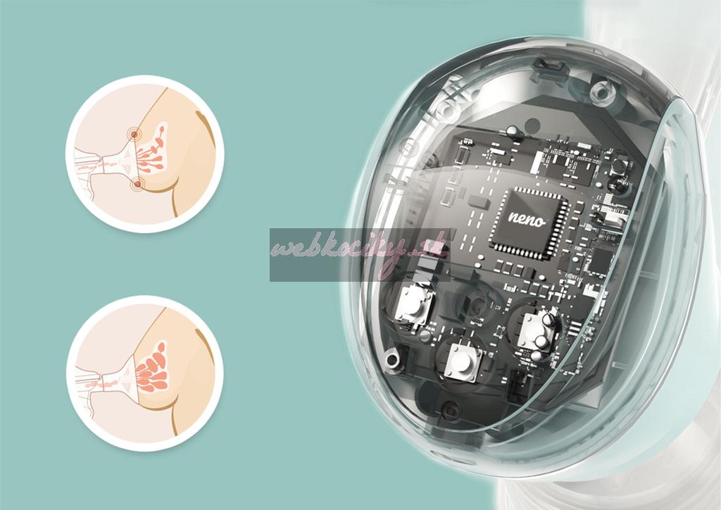 Elektronická odsávačka mlieka Neno Uno je inteligentná bezdrôtová elektrická odsávačka mlieka, ktorá napodobňuje sanie dieťaťa, aby stimulovala prirodzenú laktáciu. Odsávačka má 6 nastavení stimulácie a 9 stupňov intenzity odsávania mlieka, môžete si ju tak prispôsobiť individuálnym potrebám. Pamätá si posledné použité nastavenia. Je ideálna na výlety, dovolenky a čas strávený vonku na cestách.