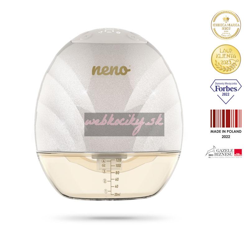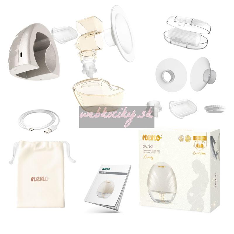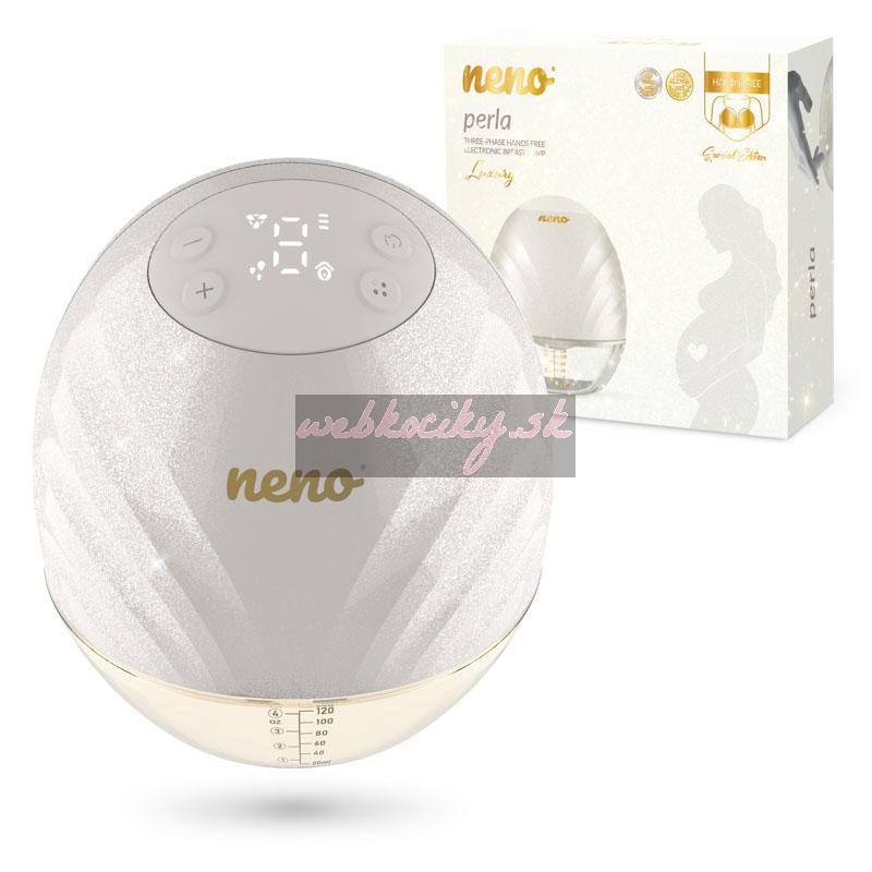 Neno Perla je inovatívna bezdrôtová handsfree odsávačka materského mlieka vďaka ktorej toho zvládnete naozaj veľa. Jeho ľahká a malá konštrukcia sa zmestí bez námahy do košíku podprsenky na dojčenie a umožní Vám tak mať voľné ruky. Odsávačka mlieka funguje na základe troch fáz s 9 úrovňami nastavenia. Má anatomický prsný štít v tvare prsníka, ktorý v uhle 105 obopína prsník a podporuje tok mlieka. Súčasťou sú dve redukcie na zmenšenie veľkosti prsného štítu v priemere 19 mm a 22 mm.
