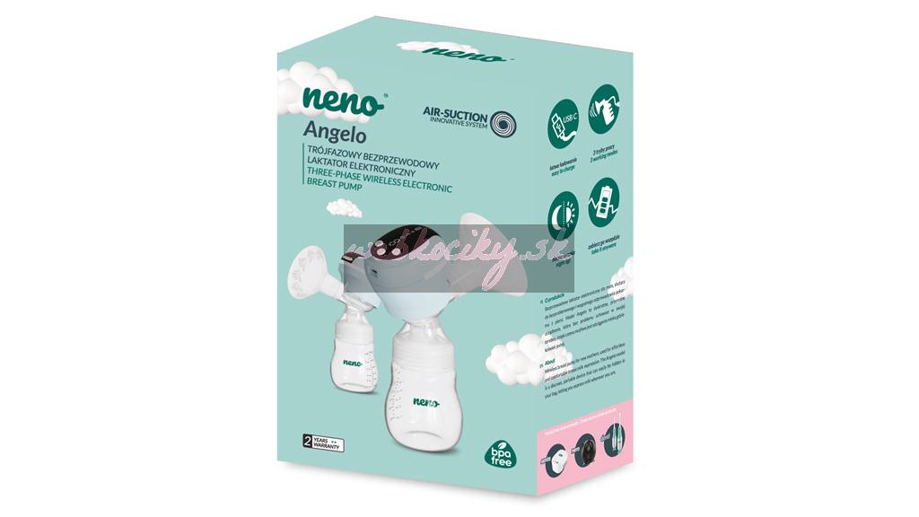 Neno Angelo je bezdrôtová trojfázová odsávačka mlieka. Je podobná ako odsávačka Neno Uno, ale s pridaným tretím režimom odsávania – takzvaným zmiešaným režimomLet-down, ktorý umožňuje efektívnejšie odsávanie materského mlieka. Je ľahká, prenosná a ergonomická - ideálna na výlety a použitie vonku.