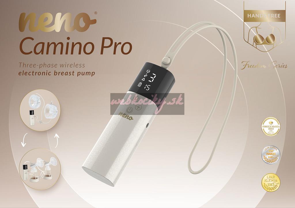 Neno Camino Pro je trojfázová bezkáblová elektronická odsávačka materského mlieka zo série Freedom. Prináša slobodu a pohodlie novým mamičkám, ktoré musia zlúčiť starostlivosť o bábätko, domácnosť, prácu a vlastnú pohodu.