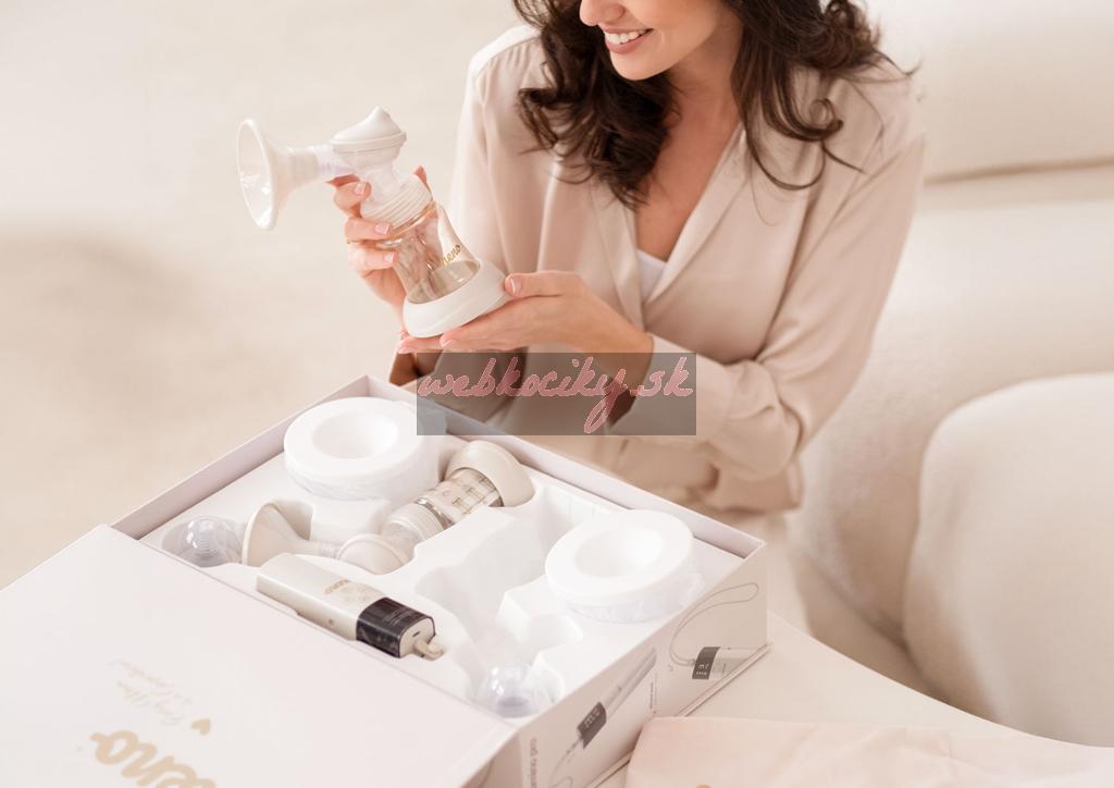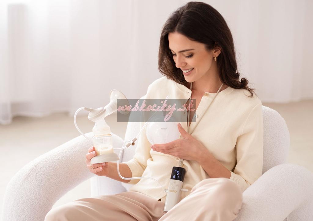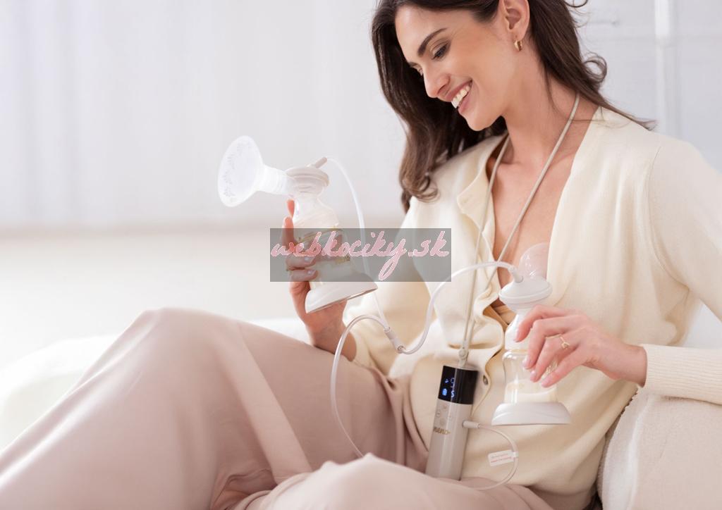 - Dvojitý spôsob odsávania – súčasne odsáva mlieko z oboch pŕs, čím šetrí čas a zvyšuje efektivitu