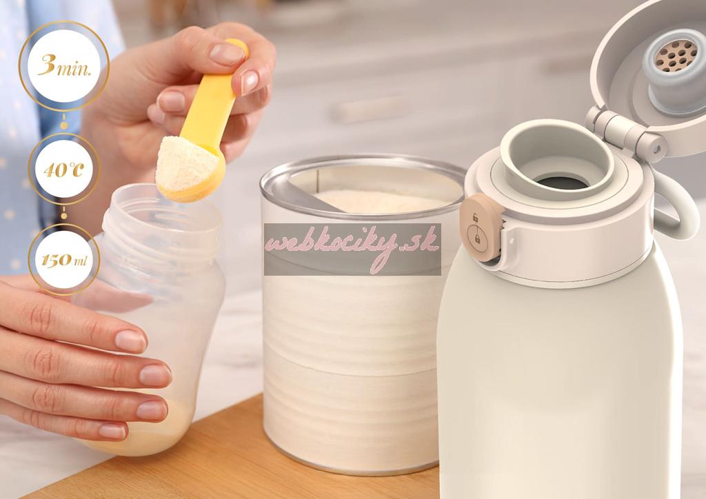 - Rýchla príprava: Za 3 minúty ohrieva 150 ml vody na ideálnych 40°C (izbovej teploty), čo je veľmi efektívne pre rýchle podanie jedla dieťaťu.