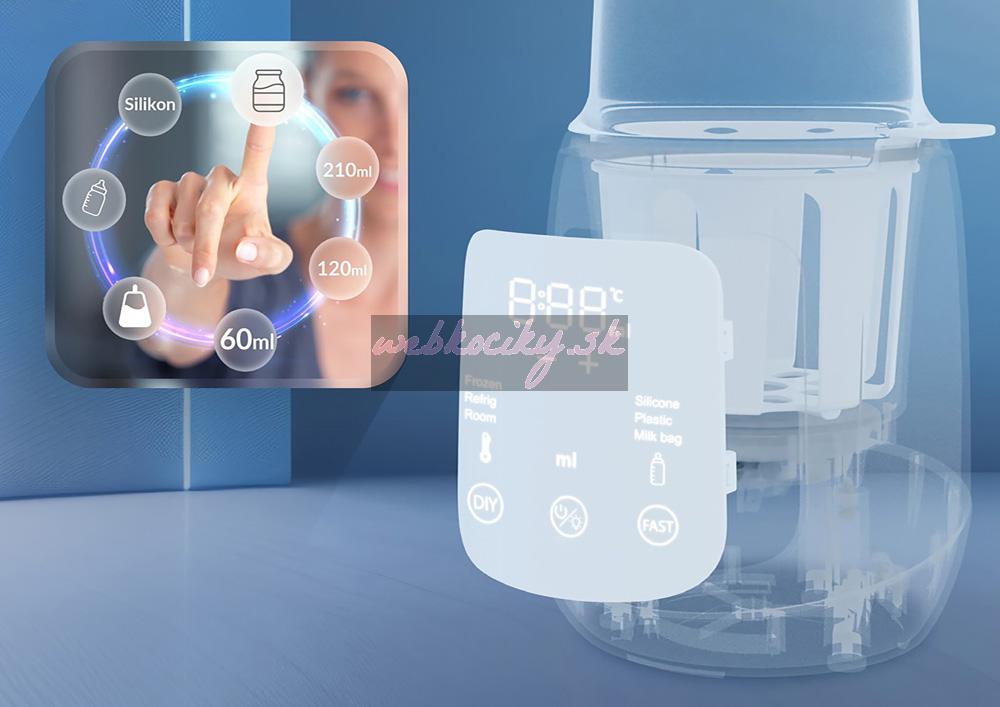 - Smart Pro systém – automaticky nastaví optimálny čas a teplotu podľa objemu, vstupnej teploty a materiálu nádoby (plast, silikón, vrecko na mlieko).