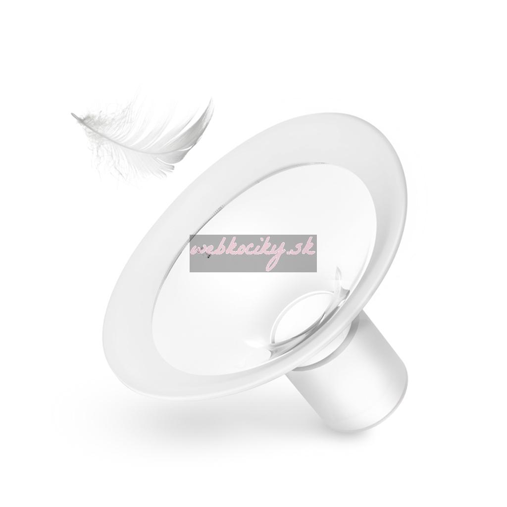 - Mäkký silikónový kryt – dokonale sa prispôsobí tvaru prsníka, rovnomerne rozloží tlak a znižuje riziko podráždenia