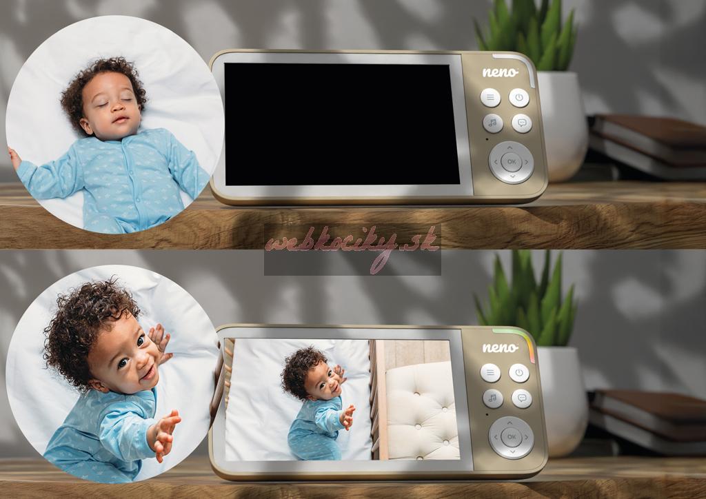 Maximálny prehľad, bezpečie a pokoj vo vašom dome. S Neno Vedo môžete mať svoje bábätko pod dohľadom cez deň aj v noci. Automatický nočný režim zabezpečí jasný a kontrastný obraz bez potreby manuálneho nastavovania. Vďaka veľkému 5-palcovému displeju uvidíte všetko prehľadne a pohodlne – bez nutnosti približovania obrazu.