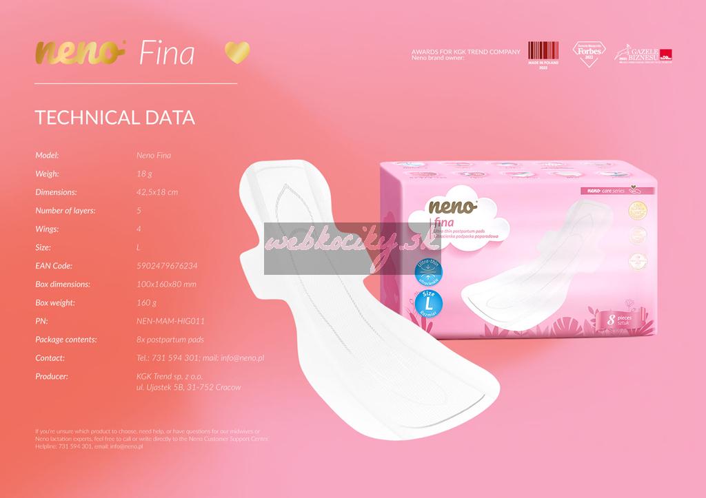 Popôrodná starostlivosť s dôrazom na pohodlie a spoľahlivosť. Vložky Neno Fina sú navrhnuté tak, aby vám poskytli diskrétnu ochranu a pocit sviežosti počas najnáročnejších dní po pôrode.