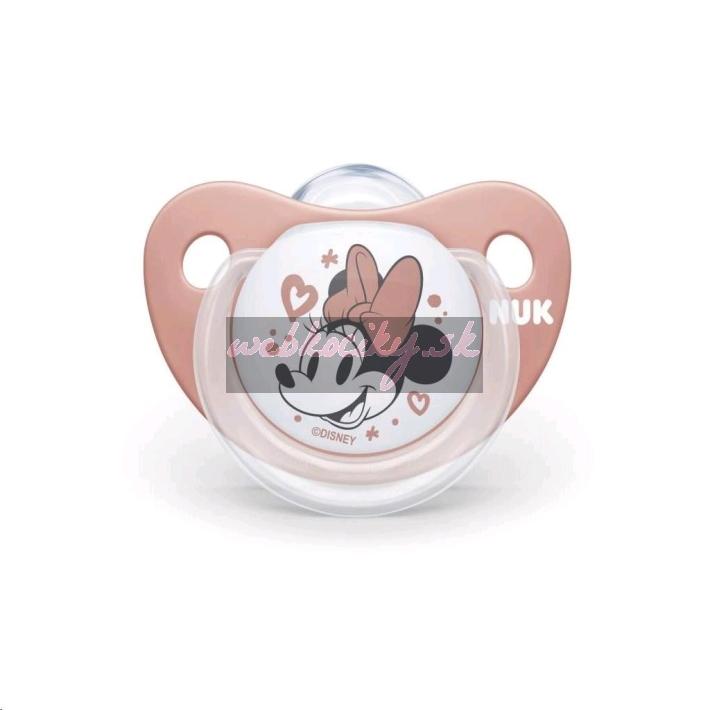 Nuk Trendline cumlíky z kolekcie "Mickey Mouse" sú dekorované roztomilými motívmi populárnych Disney postavičiek Minnie a Mickey Mouse pre každého malého Disney fanúšika. Anatomicky tvarovaná vonkajšia časť cumlíka nespôsobuje otlačenie a preto je cumlík ideálny pre pohodlné zaspávanie na boku aj na bruchu. Priehľadný silikón sa ľahko čistí, je chuťovo neutrálny, bez zápachu a je odolný voči vysokým teplotám. Neobsahuje škodlivé látky, je odolný pri vyváraní a má hladký povrch.